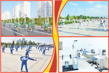 Berkarar döwletimiziň täze eýýamynyň Galkynyşy döwründe saglygy goraýyş ulgamy hormatly Prezidentimiziň baştutanlygynda hemişe üns merkezinde saklanylýar. “Saglyk” Döwlet maksatnamasyny üstünlikli durmuşa geçirmek, keselleriň öňüni alyş we bejeriş çärelerini talabalaýyk ýola goýmak, ýokary hilli saglygy goraýyş hyzmatlarynyň elýeterliligini üpjün etmek, derman senagatyny ösdürmek boýunça işler üstünlikli dowam etdirilýär. Ýurdumyzda sport bilen meşgullanmagyň köpçülikleýin häsiýete eýe bolmagy netijesinde jemgyýetimizde sagdyn durmuş ýörelgeleri berkarar edilýär.